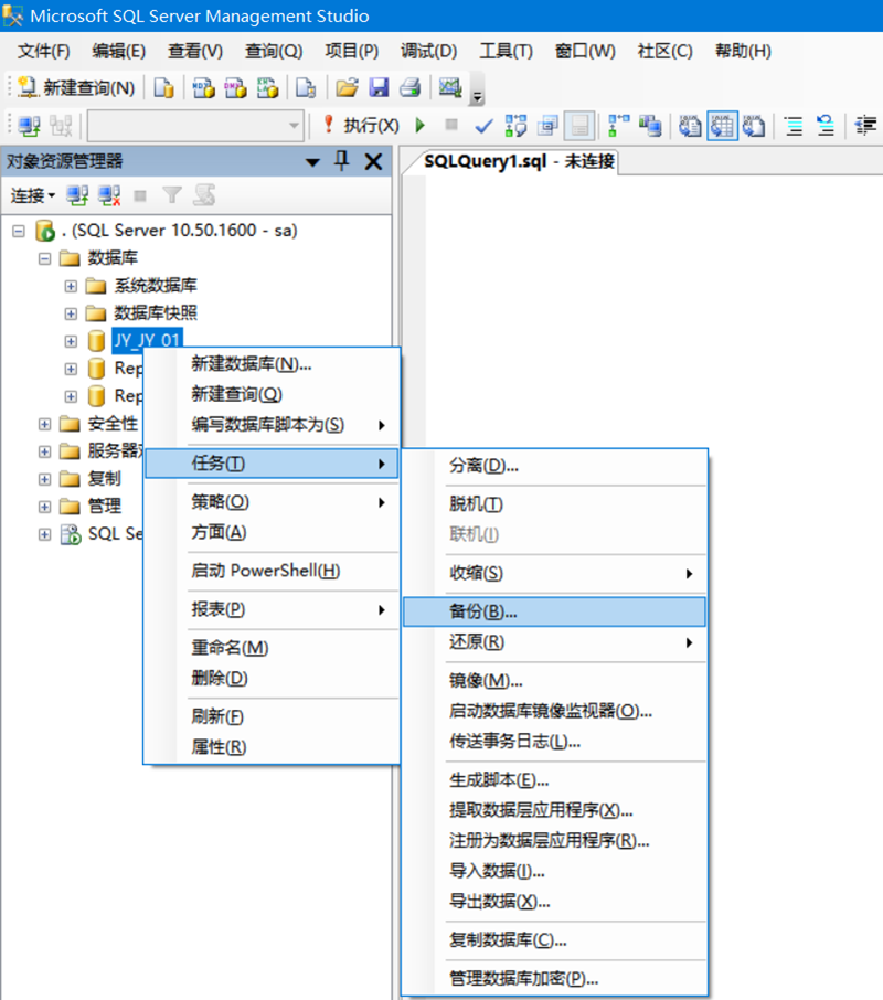 選中需要備份數(shù)據(jù)庫(kù)--右鍵--任務(wù)--備份