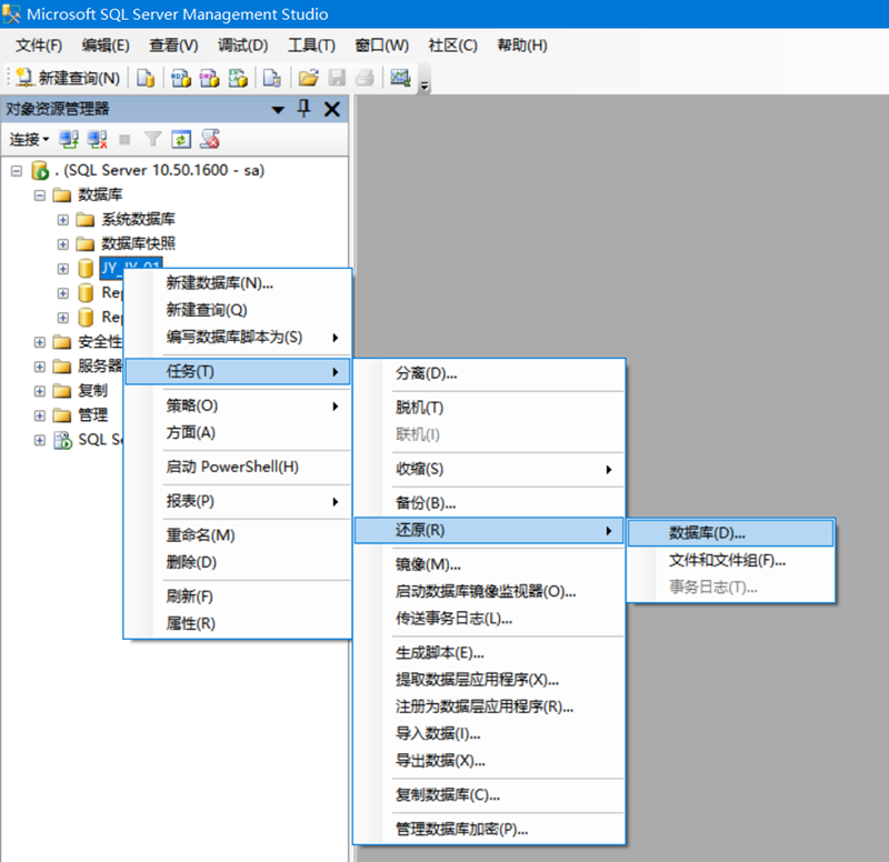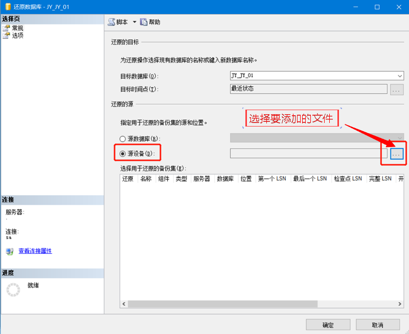 選中需要備份數(shù)據(jù)庫(kù)--右鍵--任務(wù)--還原--數(shù)據(jù)庫(kù)--選擇源設(shè)備--添加要還原的文件--確定。