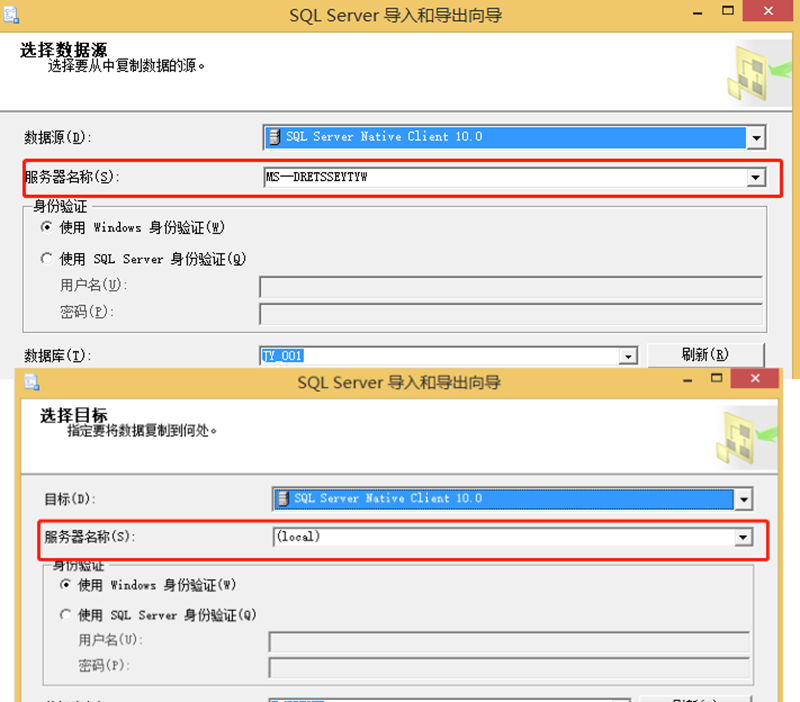 1、服務器名稱不一樣。(注:單臺電腦數(shù)據(jù)庫導入導出)