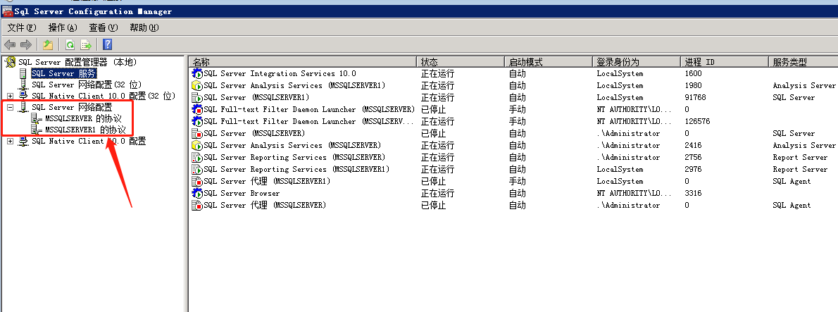 1、打開Sql server 管理配置器。