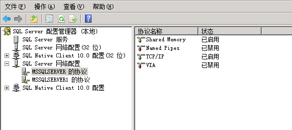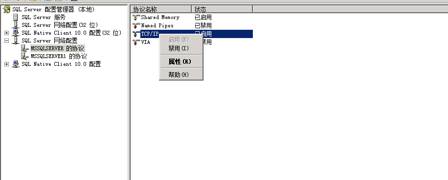 3、右鍵點(diǎn)擊TCP/IP協(xié)議,選擇“屬性”,需要修改連接數(shù)據(jù)庫的端口地址。