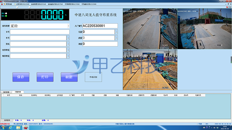 鄭州甲乙稱(chēng)重軟件為中建八局配置了車(chē)牌識(shí)別無(wú)人值守稱(chēng)重系統(tǒng),主要有以下功能特點(diǎn):