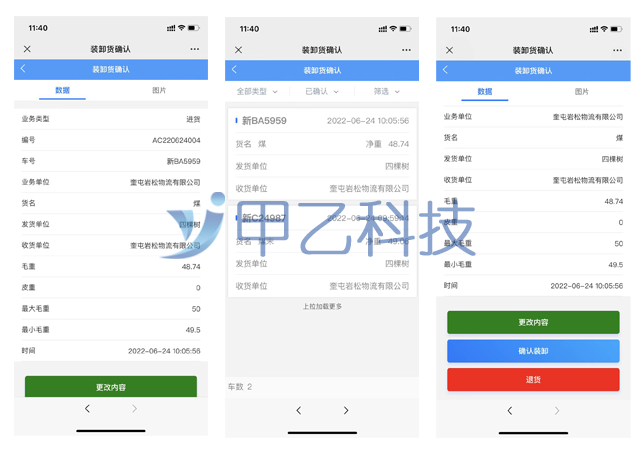 車輛駛?cè)胲囂?hào)識(shí)別區(qū)域,系統(tǒng)自動(dòng)核驗(yàn)車輛信息及登記信息,打開道閘,車輛上磅,自動(dòng)完成第一次過磅;車輛到達(dá)料庫(kù)后,現(xiàn)場(chǎng)工作人員根據(jù)車號(hào)完成車輛裝卸貨信息的在線確認(rèn),可微信在線扣水扣雜、退貨等操作,系統(tǒng)自動(dòng)記錄裝卸貨確認(rèn)信息及人員,自動(dòng)同步至稱重系統(tǒng)。只有經(jīng)過工作人員在線確認(rèn)的車輛,才能進(jìn)行第二次過磅。